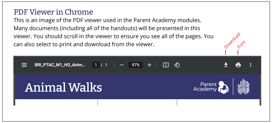 Our audience is any stakeholder in a 4-year-old’s educational journey. These stakeholders can be parents, grandparents, guardians, as well as individuals from organizations that may influence this journey (such as Head Start, Home-Visiting Programs, public and private Pre-K programs, Social Workers, Librarians). Note that Parent Academy can also be used for stakeholders who interact with children younger than 4-years-old.
